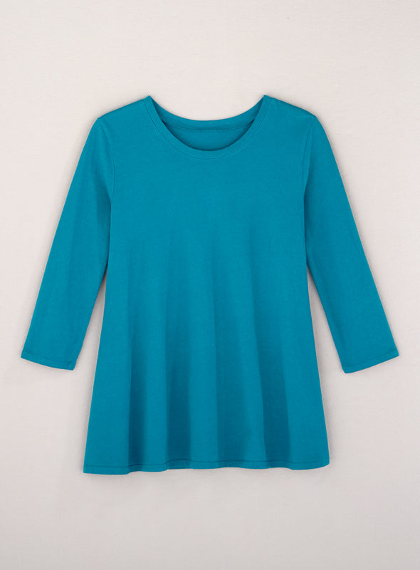 Remember to double the garment measurement if you want to compare it to your body measurements. And consider how loose or fitted of a look you’re going for. For example, if your bust is 38" around and a garment is 20" across at the bust, that gives you about 2" of ease. Garment measurements may vary up to a half inch due to the nature of the fabric.