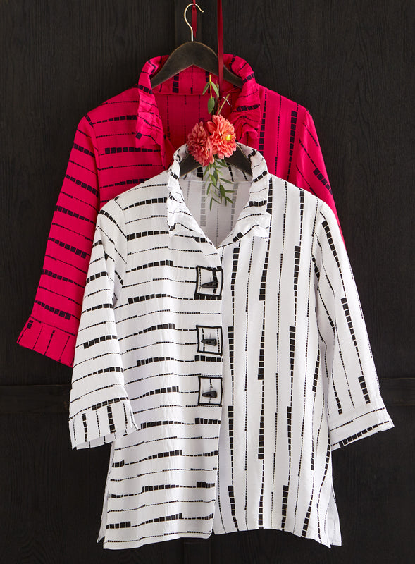 Remember to double the garment measurement if you want to compare it to your body measurements. And consider how loose or fitted of a look you’re going for. For example, if your bust is 38" around and a garment is 20" across at the bust, that gives you about 2" of ease. Garment measurements may vary up to a half inch due to the nature of the fabric.