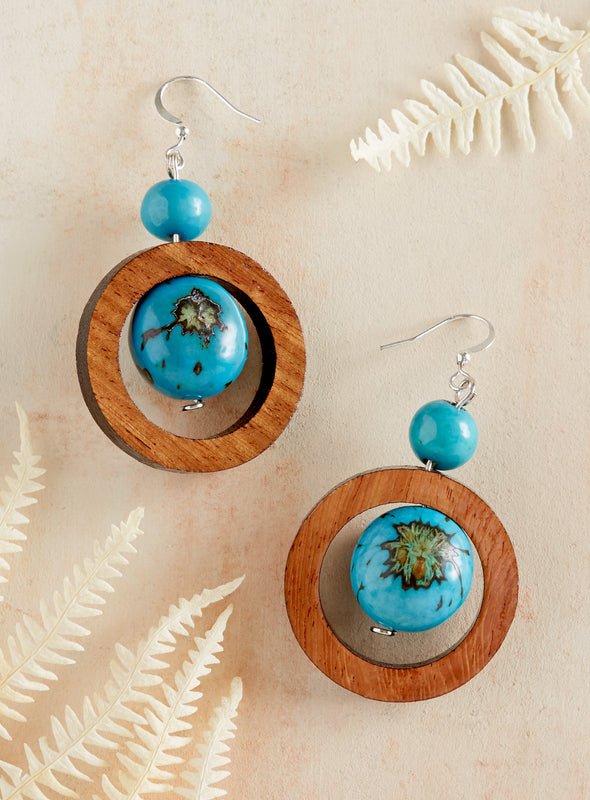 The wood discs are different shades of brown and accent many of my print blouses. Casual, yet classy!