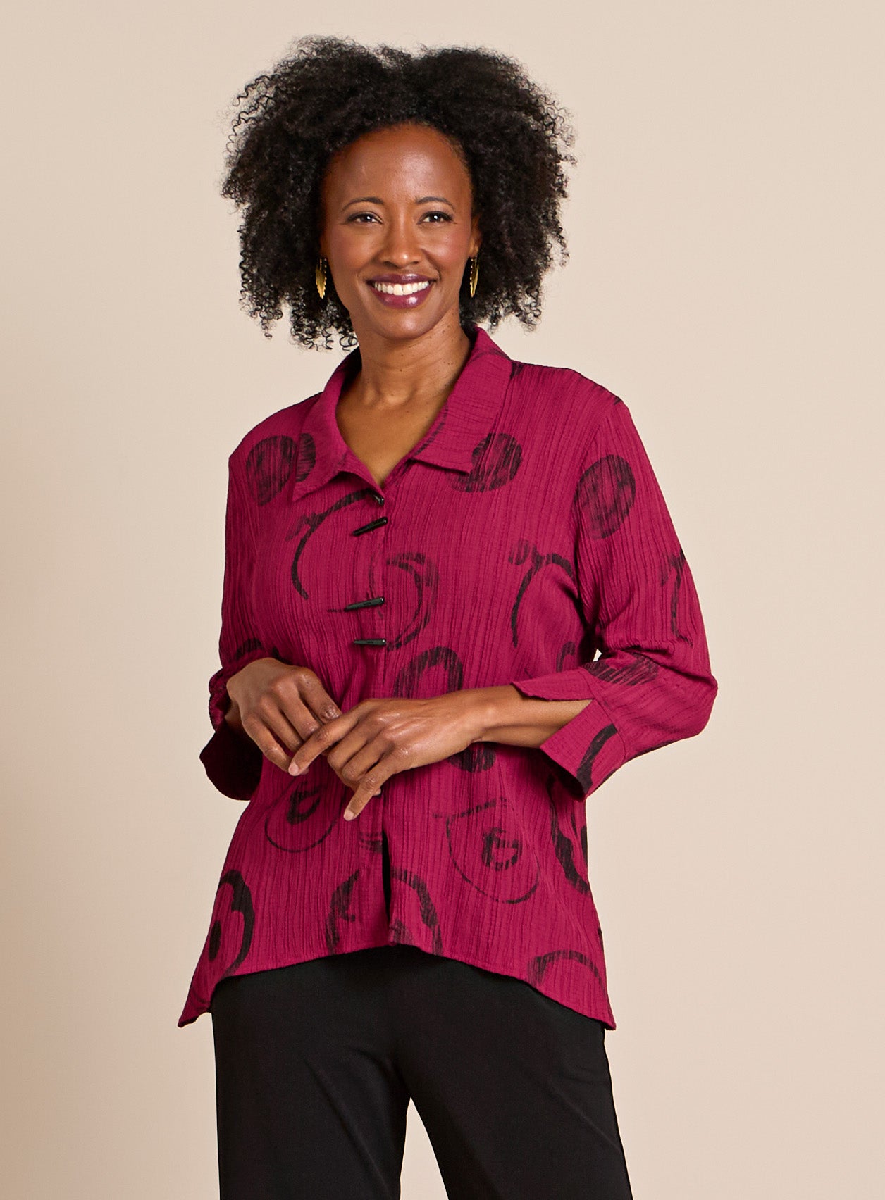 Remember to double the garment measurement if you want to compare it to your body measurements. And consider how loose or fitted of a look you’re going for. For example, if your bust is 38" around and a garment is 20" across at the bust, that gives you about 2" of ease. Garment measurements may vary up to a half inch due to the nature of the fabric.