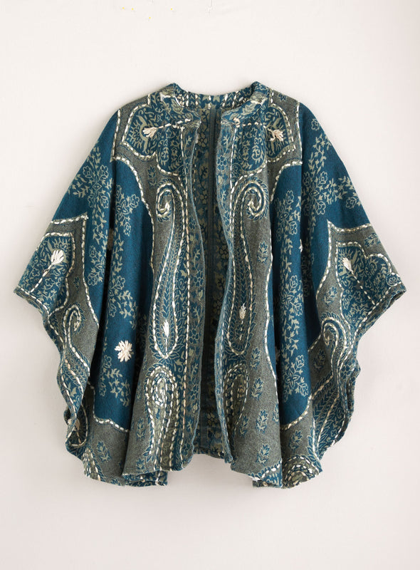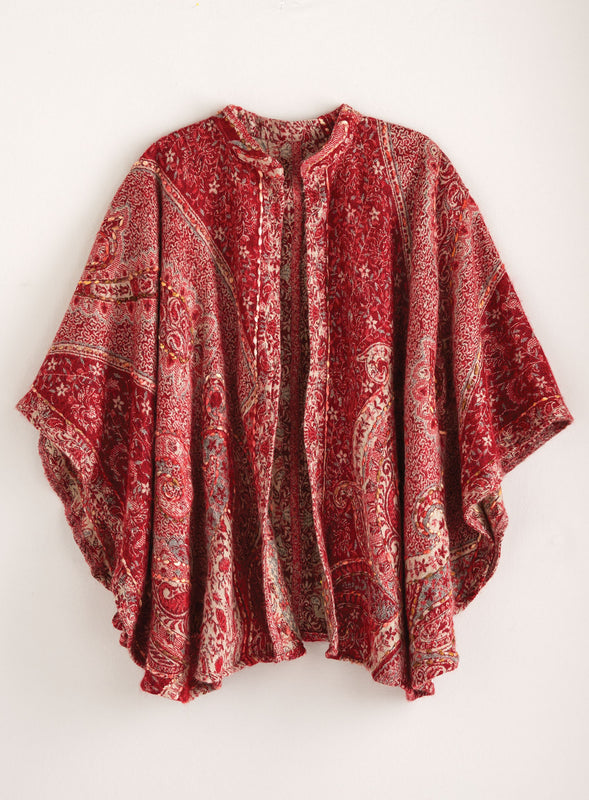 Paisley shawls from India were the height of luxury in the 19th century. Later generations often refashioned those hand-me-downs into trendy jackets and shrugs. This cozy topper takes the tradition into the 21st century—without altering any family heirlooms.