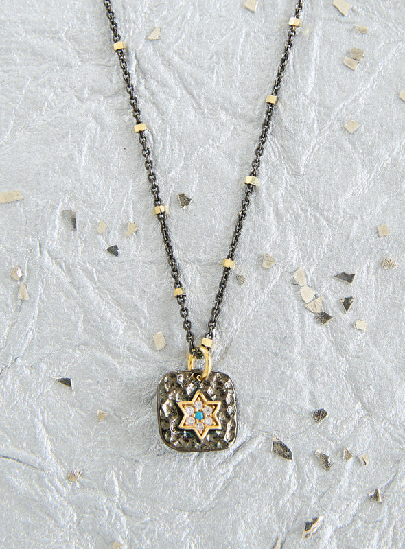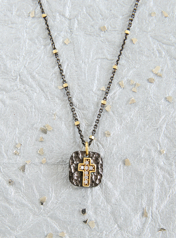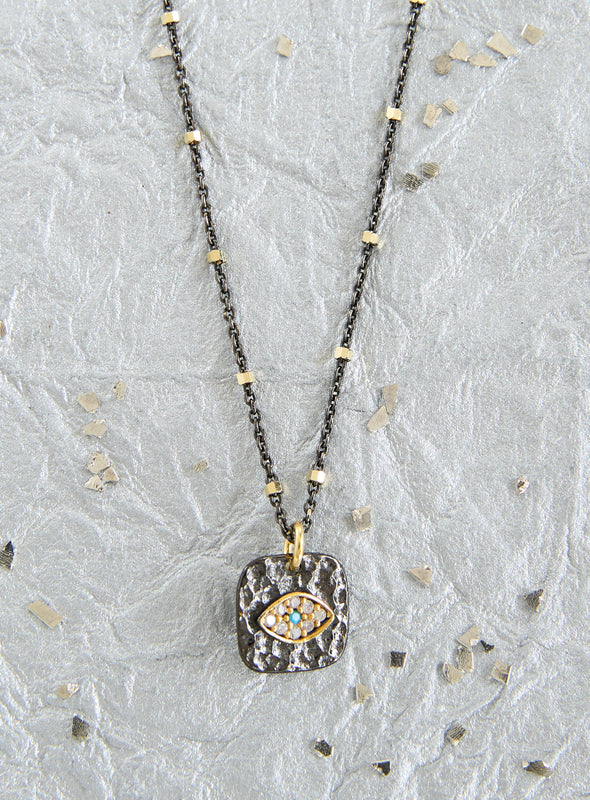 With their glittering wings and effortless grace, it’s no wonder that darting dragonflies are the source of countless legends. For us at Petalura—named for a species of dragonfly—they’re a sign of growth through transformation. After all, dragonflies spend most of their lives as nymphs before emerging into their agile, iridescent adult form. Our handcrafted dragonfly necklace is an empowering gift for any woman facing change. Which, let’s face it, is every woman. Hammered sterling silver is plated in dark rhodium with 22k gold accents and hung on an oxidized chain with 14k gold-plated bead detailing.
