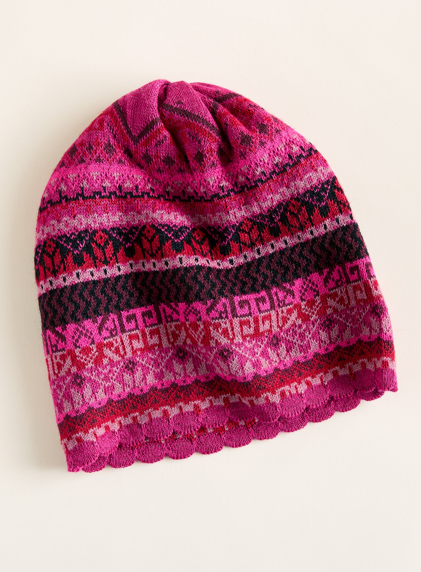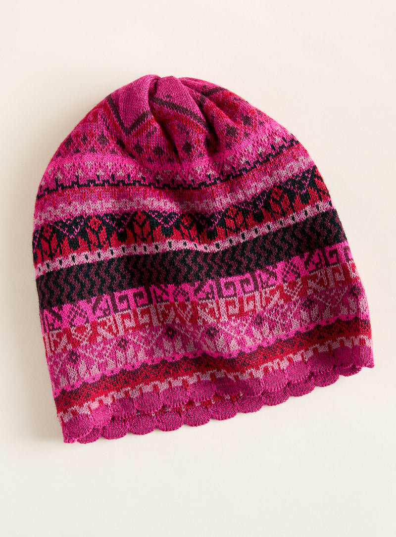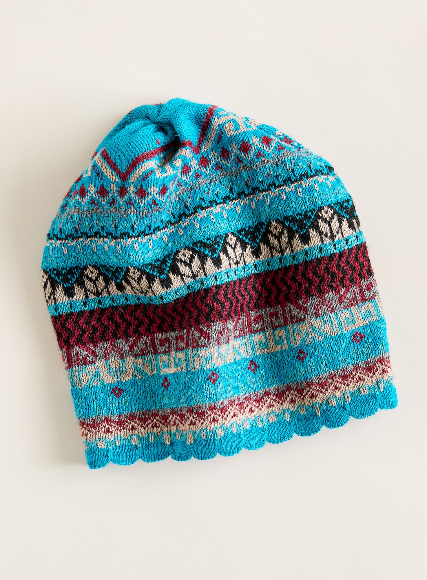 Bright patterns and a soft, smooth texture add cheer and warmth to your winter. This jacquard-knit hat in an alpaca/acrylic blend is easy to tuck in a pocket or bag. It’s lightweight, never itchy, and perfectly matches our Altiplano Jacquard-Knit Handwarmers.