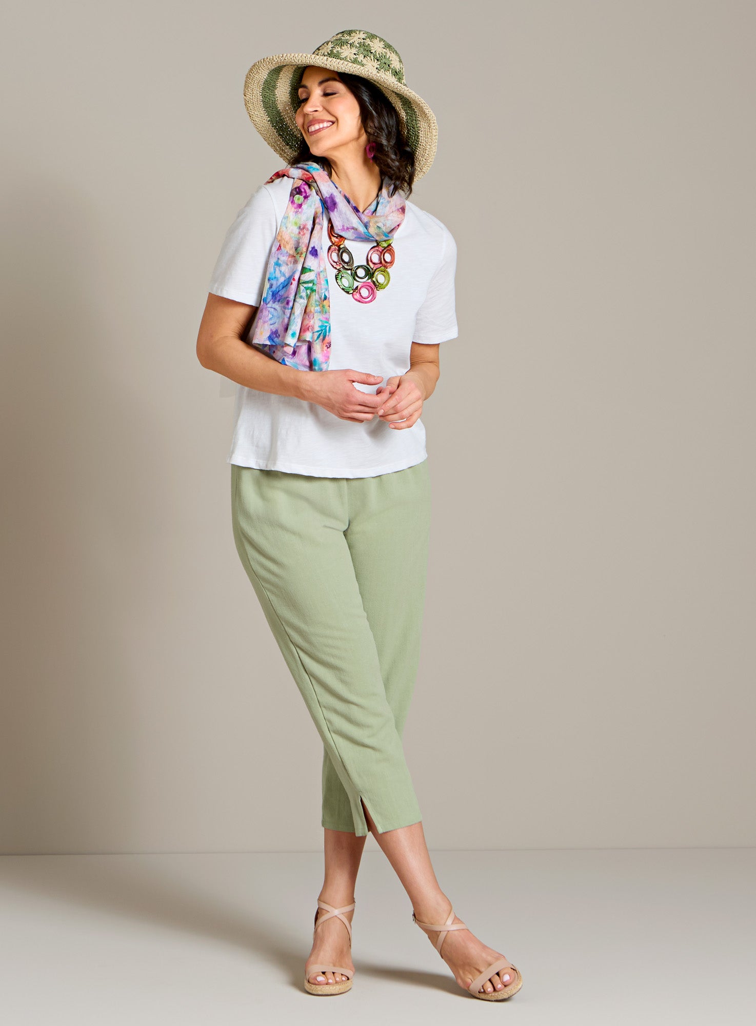 Remember to double the garment measurement if you want to compare it to your body measurements. And consider how loose or fitted of a look you’re going for. For example, if your bust is 38" around and a garment is 20" across at the bust, that gives you about 2" of ease. Garment measurements may vary up to a half inch due to the nature of the fabric.