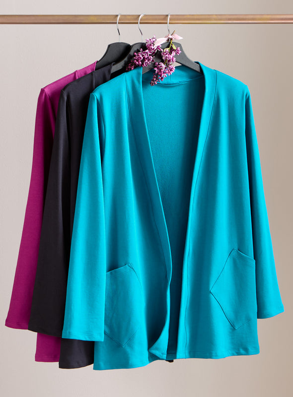 Remember to double the garment measurement if you want to compare it to your body measurements. And consider how loose or fitted of a look you’re going for. For example, if your bust is 38" around and a garment is 20" across at the bust, that gives you about 2" of ease. Garment measurements may vary up to a half inch due to the nature of the fabric.
