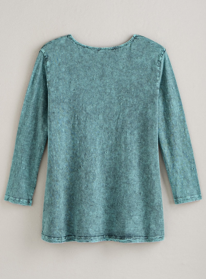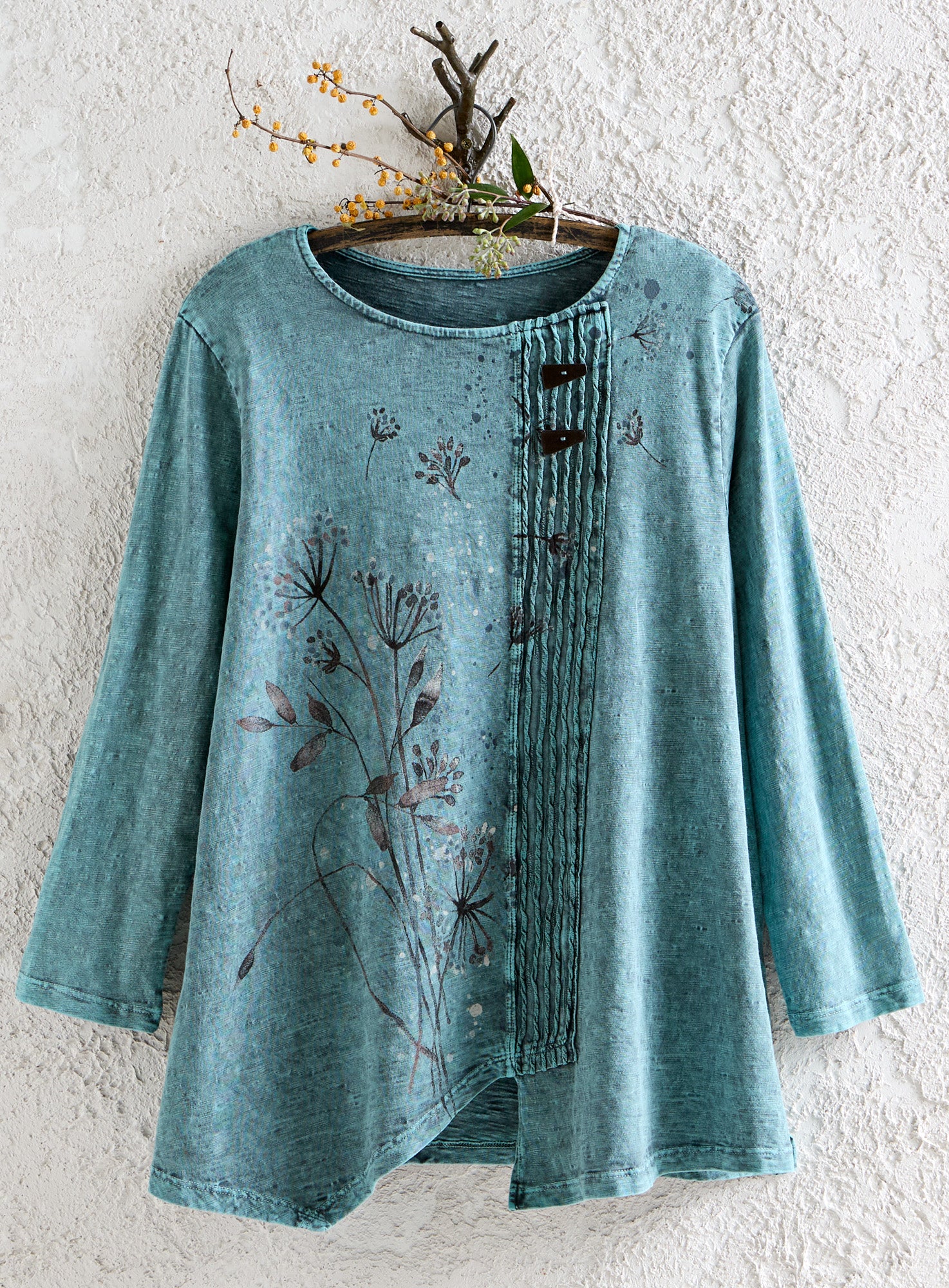 Remember to double the garment measurement if you want to compare it to your body measurements. And consider how loose or fitted of a look you’re going for. For example, if your bust is 38" around and a garment is 20" across at the bust, that gives you about 2" of ease. Garment measurements may vary up to a half inch due to the nature of the fabric.