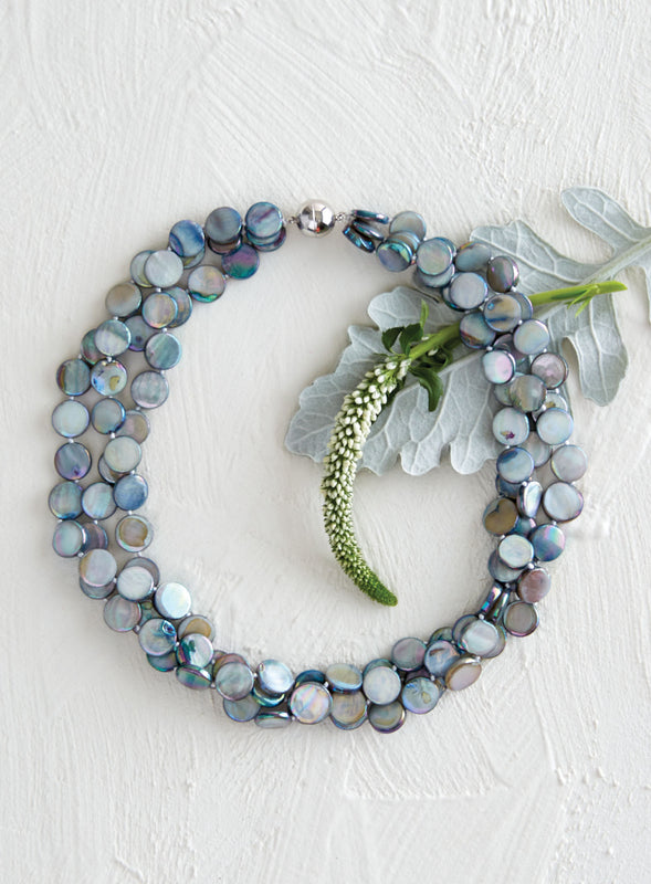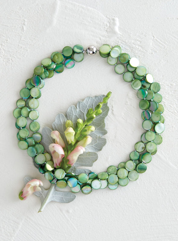 Dyed mother-of-pearl earrings have an iridescent glow that matches our Magnetic Personality Necklace and Bracelet and is gorgeous on its own as well.