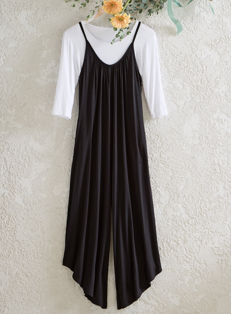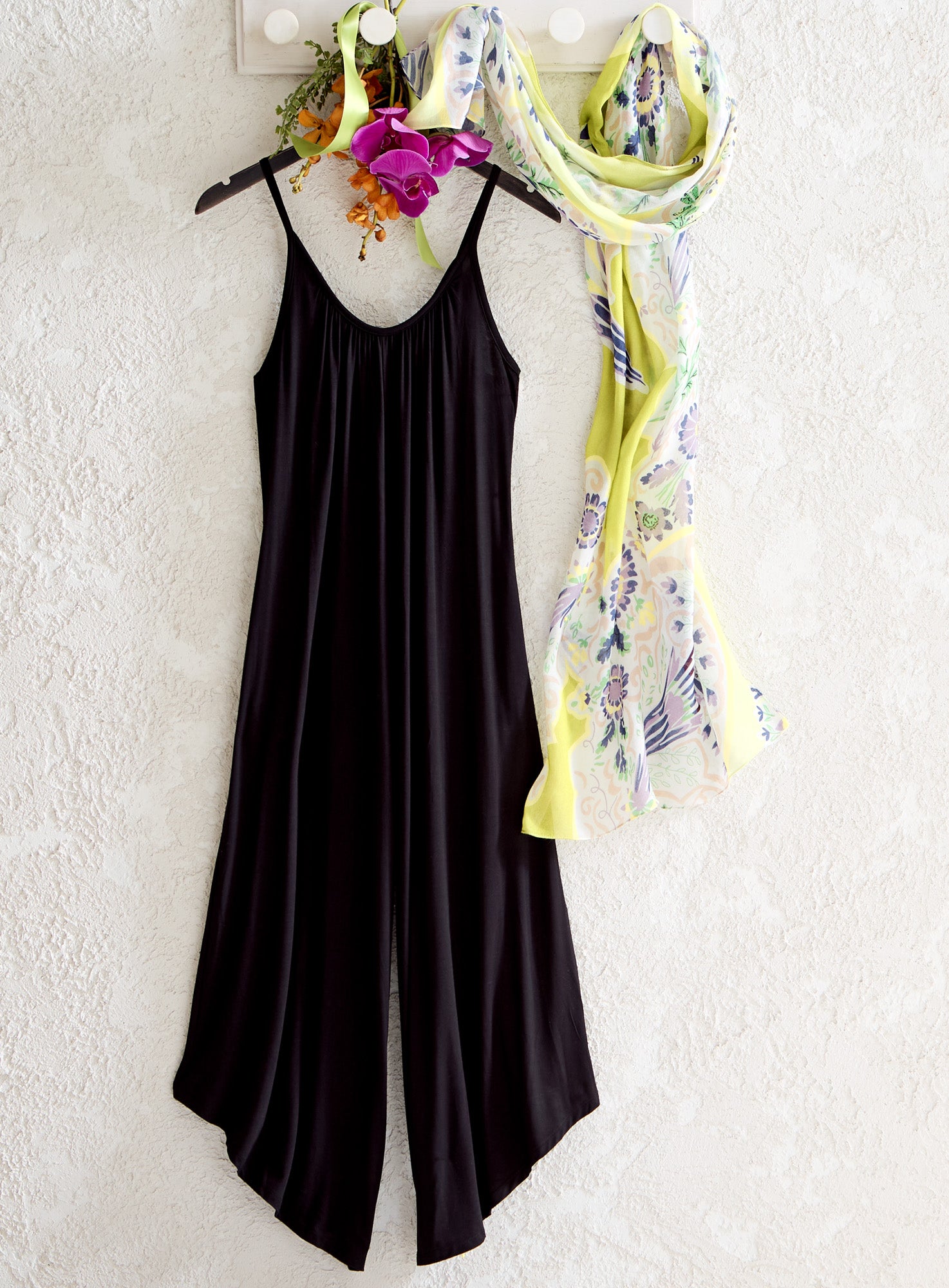 Made in the US from a soft and stretchy rayon/spandex knit, it’s comfortable all day and polished enough to dress up. The slender straps are not adjustable but simple to shorten if needed. Wear it layered over a fitted tee or tank, toss it on as a swim cover-up, or add a lightweight jacket and sandals for dinner. It's minimal effort, maximum mileage, and sure to earn its space in your closet.
