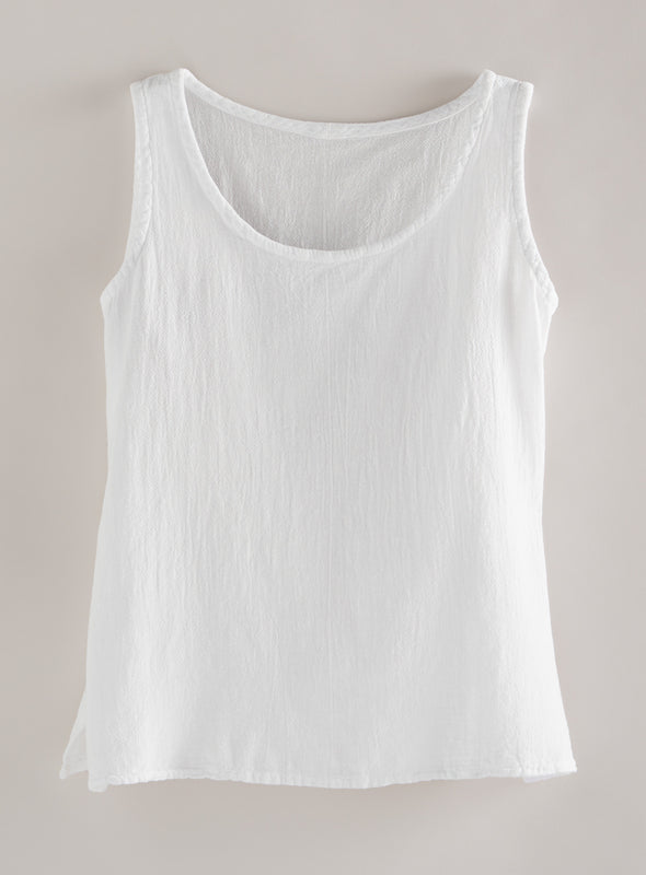 Cover up but keep your cool. Pure cotton gauze in a boxy, ever so slightly cropped cut layers beautifully over tops and tunics with longer hemlines (like our Catalina Cotton Gauze Tank). Hits just above the hips on most. Back features a horizontal seam detail and a pleat for ease.