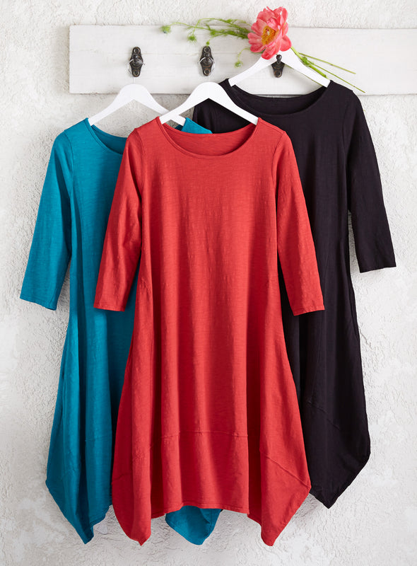 Remember to double the garment measurement if you want to compare it to your body measurements. And consider how loose or fitted of a look you’re going for. For example, if your bust is 38" around and a garment is 20" across at the bust, that gives you about 2" of ease. Garment measurements may vary up to a half inch due to the nature of the fabric.