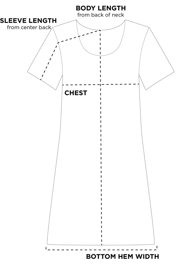 Remember to double the garment measurement if you want to compare it to your body measurements. And consider how loose or fitted of a look you’re going for. For example, if your bust is 38" around and a garment is 20" across at the bust, that gives you about 2" of ease. Garment measurements may vary up to a half inch due to the nature of the fabric.