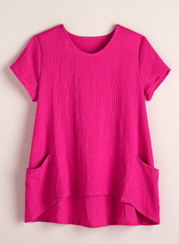 Remember to double the garment measurement if you want to compare it to your body measurements. And consider how loose or fitted of a look you’re going for. For example, if your bust is 38" around and a garment is 20" across at the bust, that gives you about 2" of ease. Garment measurements may vary up to a half inch due to the nature of the fabric.
