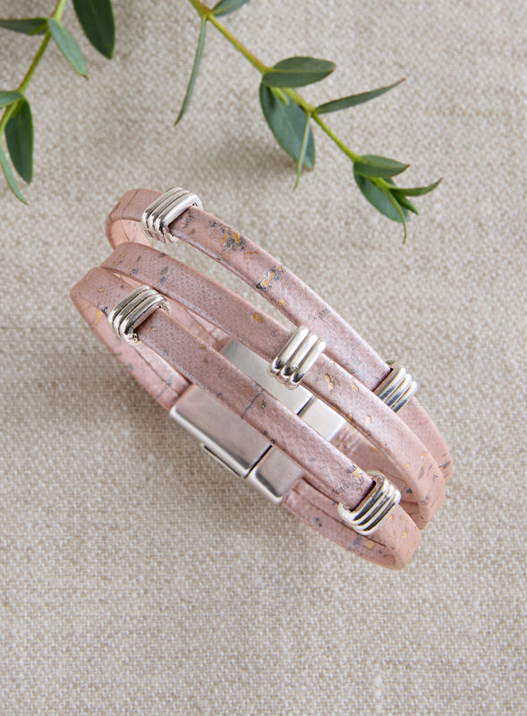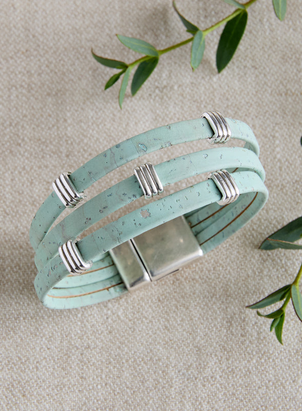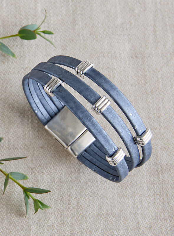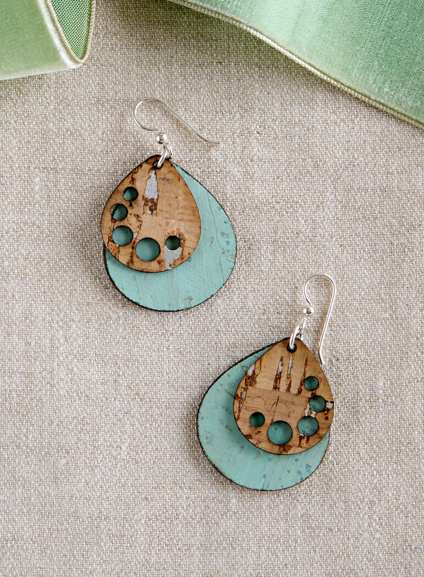 A Vermont-based artisan uses sustainably sourced cork from Portugal to craft a pair of earrings worth toasting to. We’ll explain: Portugal’s montado region makes more than 70% of the world’s wine corks, and cork fabric is a cool byproduct that designers often use as a lightweight alternative to leather.  Here, cork fabric creates earrings so lightweight, you may forget you’re wearing them. Silver streaks in the laser-cut drop adds a little shine and a little textural contrast.
