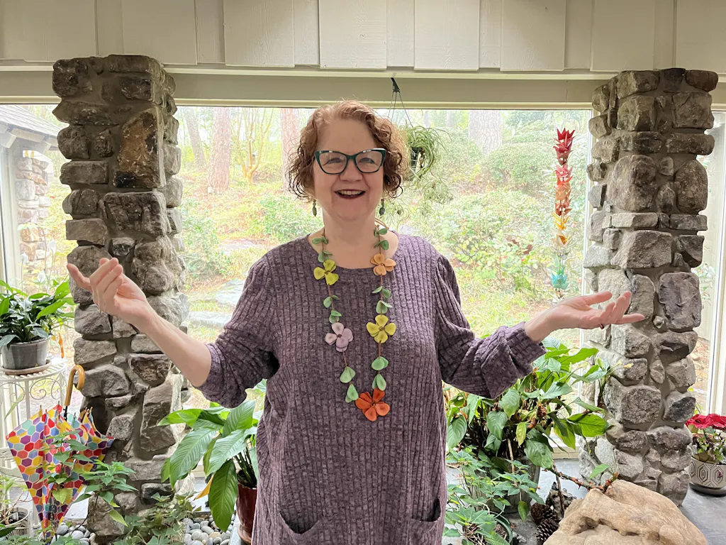 I love my new flower necklace and have already worn it with different kinds of clothes and colors. It adds a sense of springtime to any occasion.